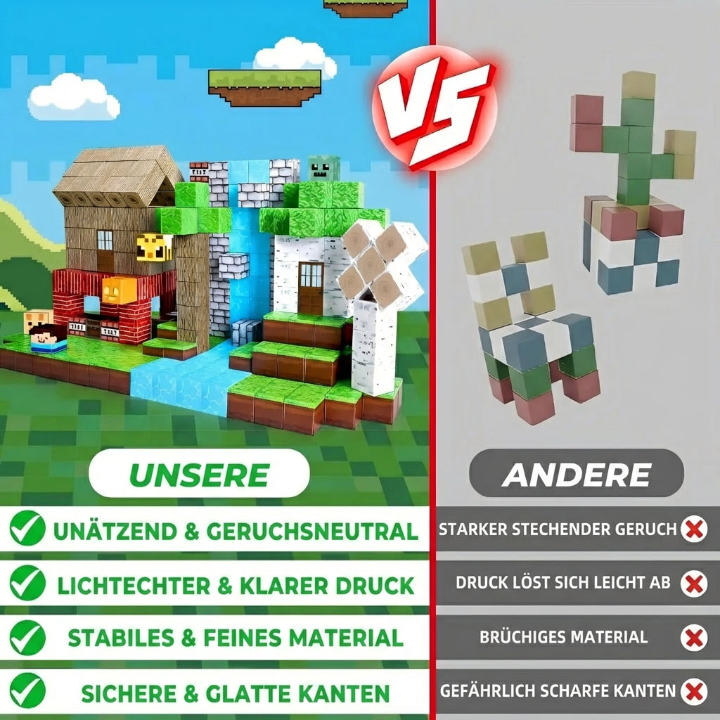 Alle MagnaBlocks werden aus ungiftigen, kindersicheren Materialien hergestellt. Die robusten Bausteine ​​halten auch wildem Spielen und häufigem Gebrauch stand. Abgerundete Kanten sorgen für Sicherheit für alle Altersgruppen.